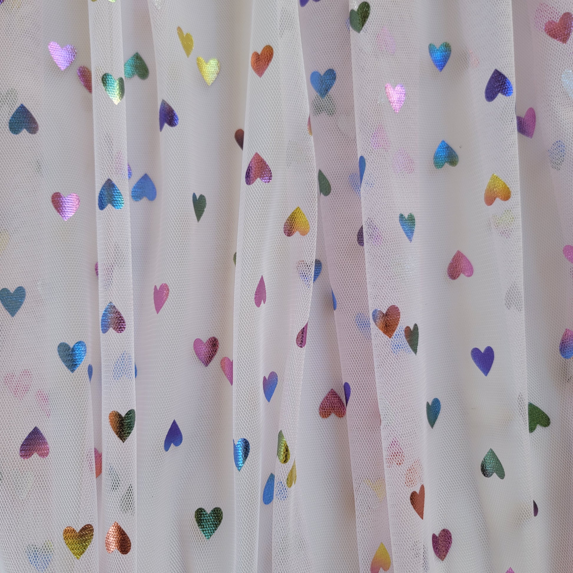 4-way stretch mesh with foil hearts