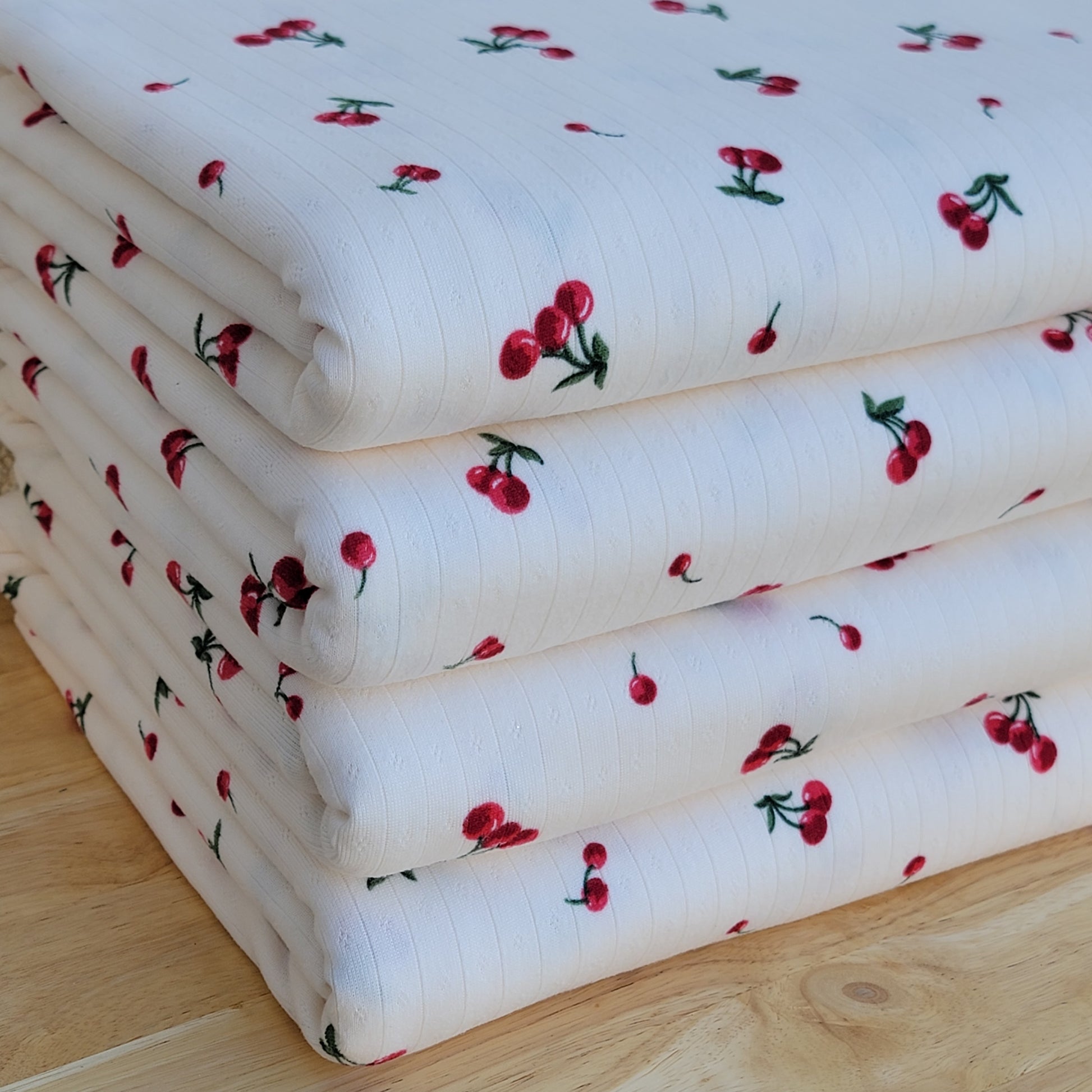 Pointelle Rib Cherries Print Off-white
