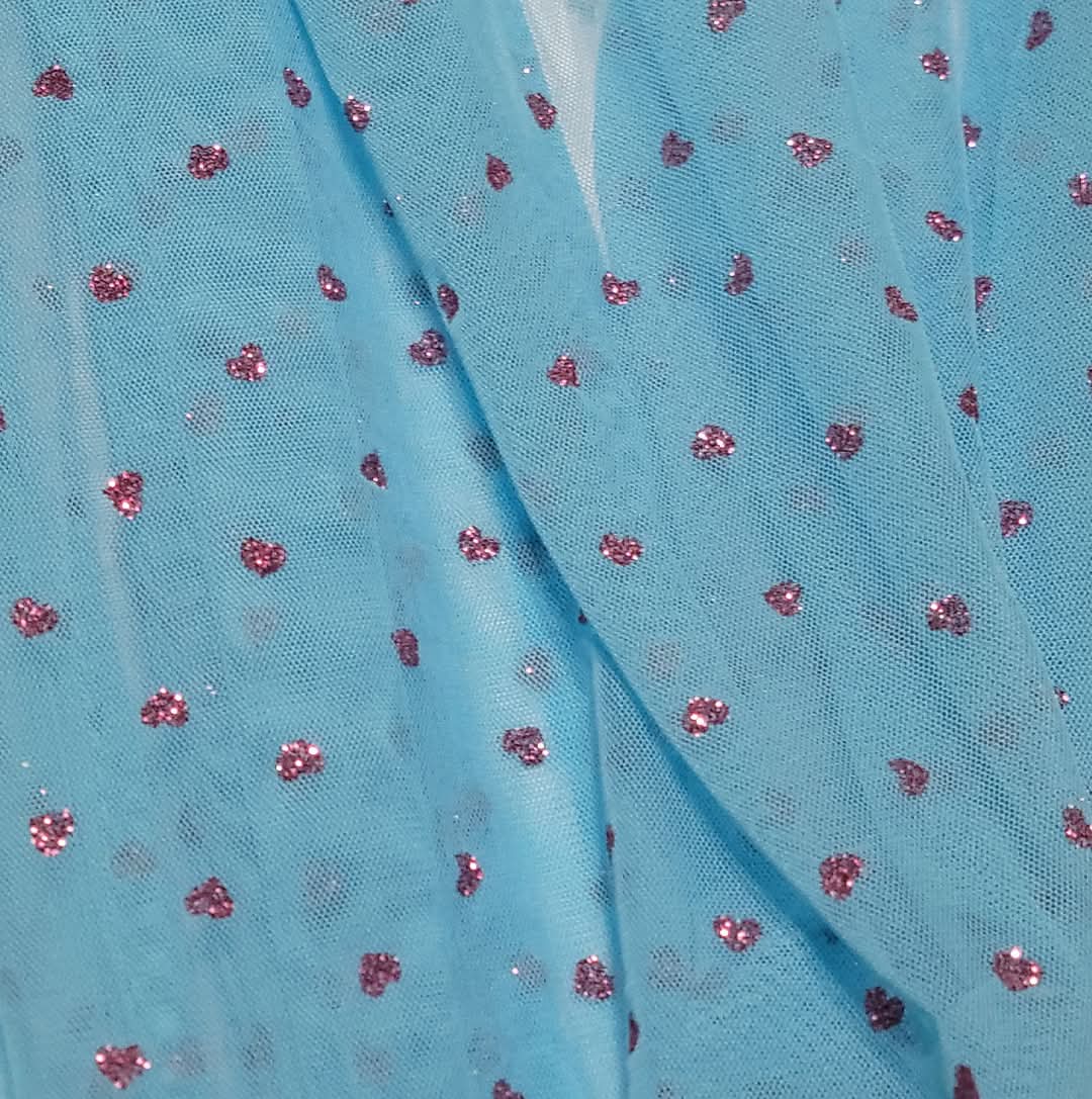 Turquoise Mesh Glitter Hearts
